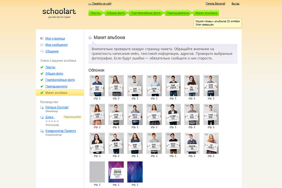 структура и наполнение альбома персональные для каждого класса и выпускника